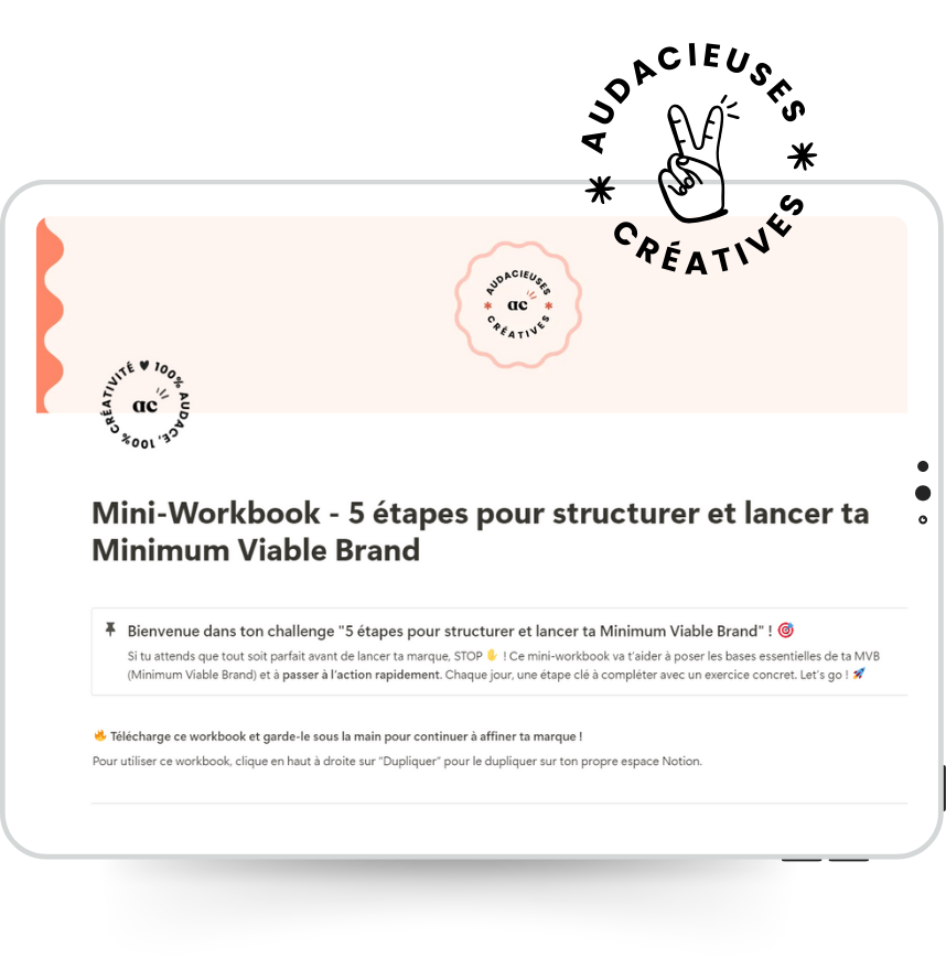 Ce mini-workbook va t’aider à poser les bases essentielles de ta MVB (Minimum Viable Brand) et à passer à l’action rapidement. Chaque jour, une étape clé à compléter avec un exercice concret.